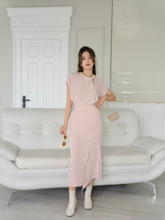 Split Pink Midi Dress - Gu Fashion | Vietnam Fashion Style