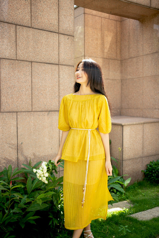 Jinni Yellow Oval Neck Top and Splitted Tunic Skirt - Gu Fashion | Vietnam Fashion Store