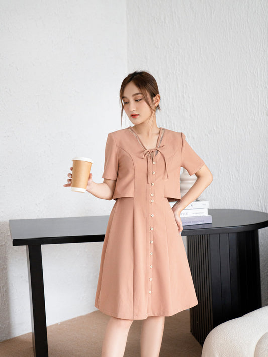 Maris Pink Buttoned A-Line Dress - Gu Fashion | Vietnam Fashion Style