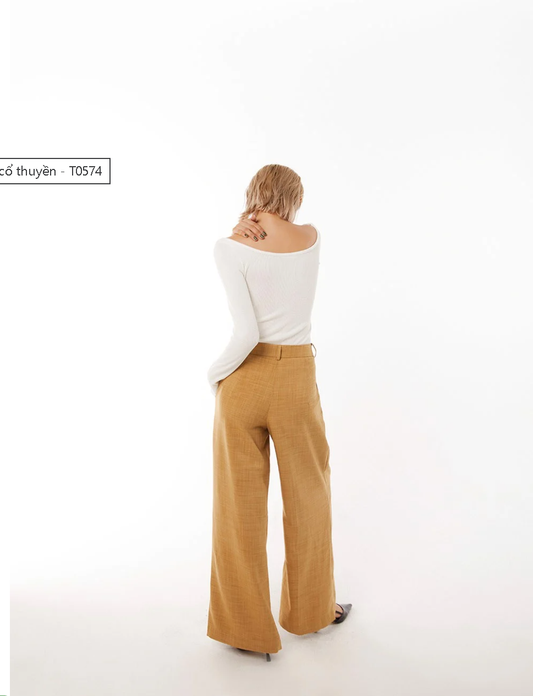 Dottie Elastin Neck Long Sleeve Shirt - Gu Fashion | Vietnam Fashion Store